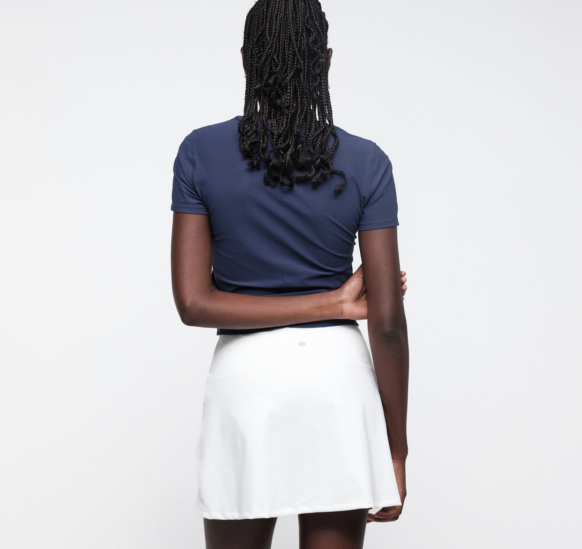 Less transparent than classic mesh, this semi-sheer fabric offers a sporty, casual look that can be layered over Active and Active Flow pieces or worn on its own. It features visible cover stitches for an active vibe and a tee design for versatile styling.