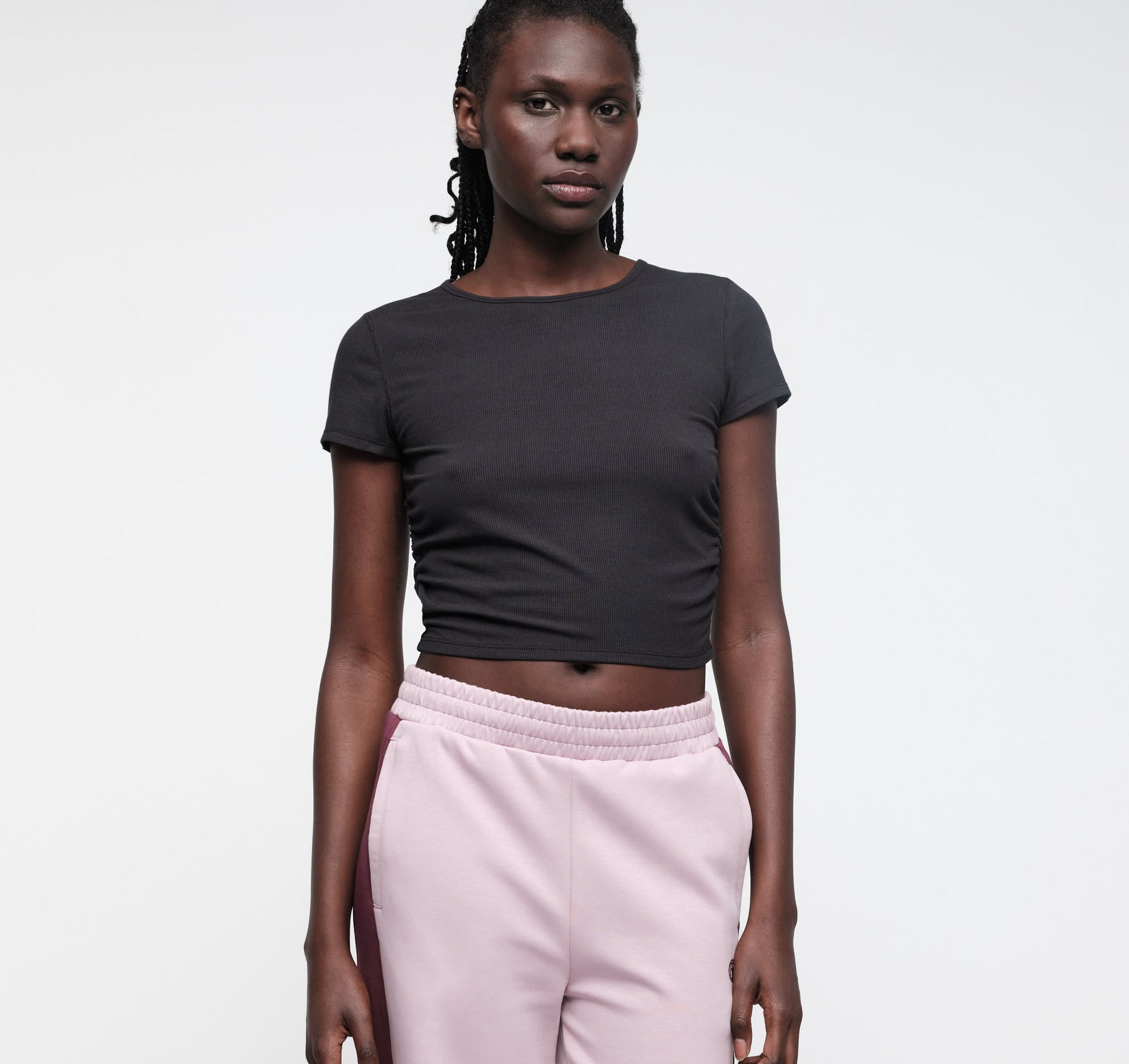 • Active tee with side ruching for shape and a flattering fit
